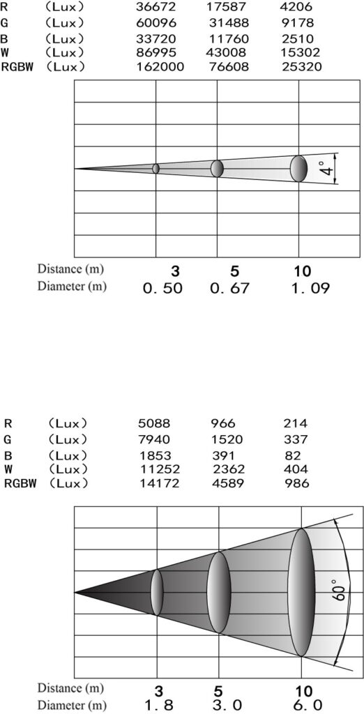 BE – K40 Power supplyAC90-260V 50/60 HzPower consumption: 1200W Light source25*40W RGBW 4 in1 Osram LEDsIndividual LED control Average life: 30,000 hrsColor temperature: 2500K-9000K EffectZoom angle: 4-60°; 76000lux@5m@Min angleVariable Built-in dynamic effects4 Liner dimming curves2 color mode(RGBW / CMY)Strobe: 1-25 hz, random and pulse flash ControlPan/Tilt: InfinityControl mode: DMX512/Art-net/RDMDMX channels: 19/22/118XLR in & out: 3-pin Display: LCD Color display with self-charging battery Fixture size Packed Net weight: 30 kgCarton box(1-in-1): Size: 67×66×51 cmPacked weight: 36 kgFlight case(2-in-1): Size: 120×60×90 cmPacked weight: 114 kg Photometrics